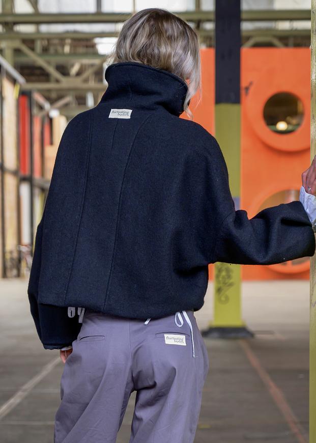 De hoge kraag kan zowel opstaand als omgeslagen worden gedragen, waardoor je moeiteloos varieert tussen een moderne of meer klassieke uitstraling. Voorzien van praktische zakken, een hoogwaardige YKK-rits en een elegante voering van gladde taft die zorgt voor een luxe afwerking en comfortabel draaggemak. De achterkant is subtiel afgewerkt met het Fluctuating Bodies logo als herkenbaar detail.